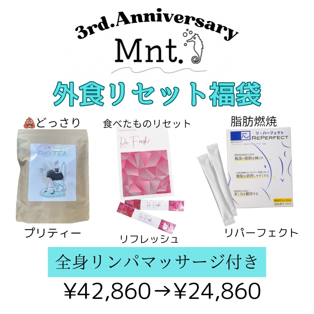 ミント3周年限定福袋 プリティー リフレッシュ リパーフェクトに全身リンパマッサージが一回付いてきます!
